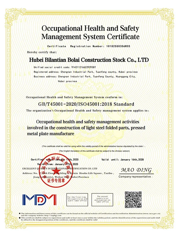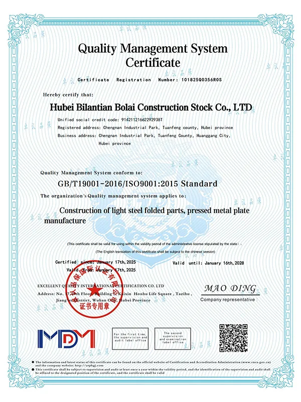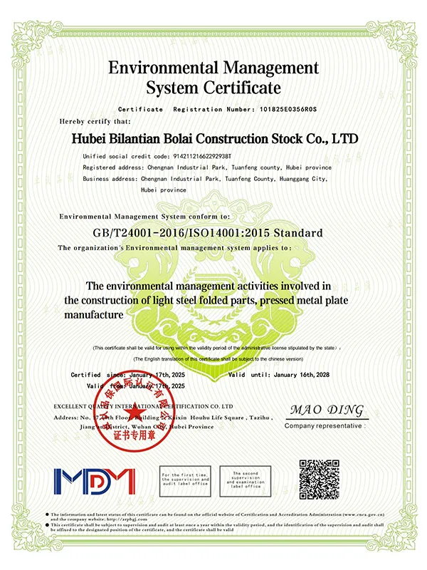 منذ تأسيسها في عام 2003، تكرس شركة Hubei Bilantian Bolai Construction Incorporated جهودها للبحث والتطوير وتصنيع المباني ذات الهياكل الفولاذية وأنظمة البناء. بفضل أكثر من 22 عام من الخبرة في هذا المجال، الشركة تتبني مفهوم المباني الخضراء (الصديقة للبيئة)، والمساحات الخضراء، وثقافة المحافظة على البيئة، ونمط الحياة الخضراء، مقدمة حلول معمارية تجمع بين الجمال والقيمة المستدامة.